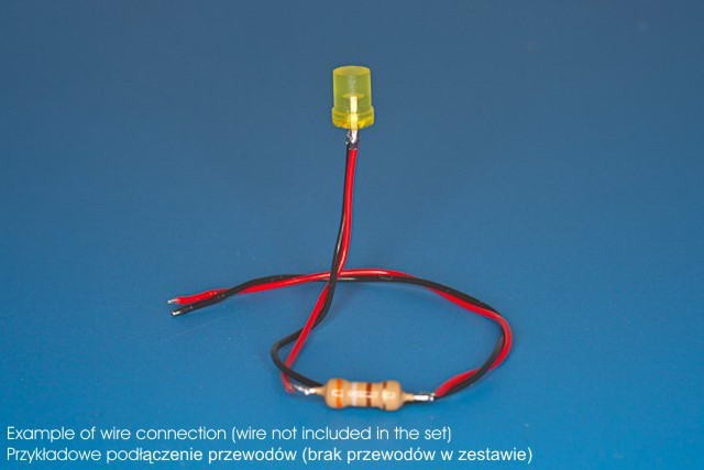 Opakowanie zawiera diodę LED, opornik 390 Ohm 6V-12V oraz mosiężną obudowę lampy.