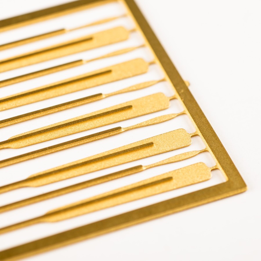 Wiosła fototrawione z blachy mosiężnej.