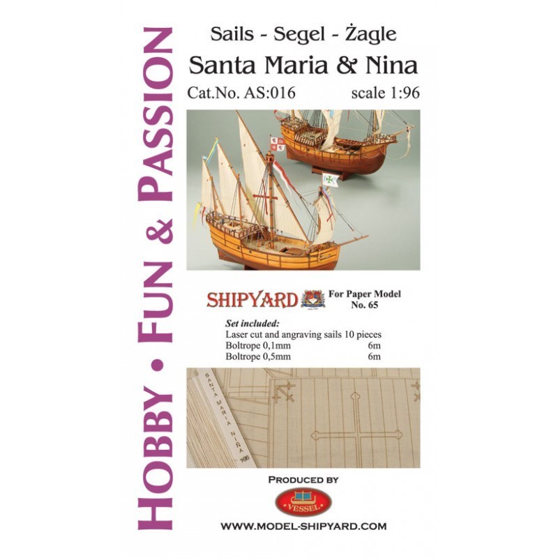 Komplet żagli do modelu kartonowego Santa Maria i Nina.