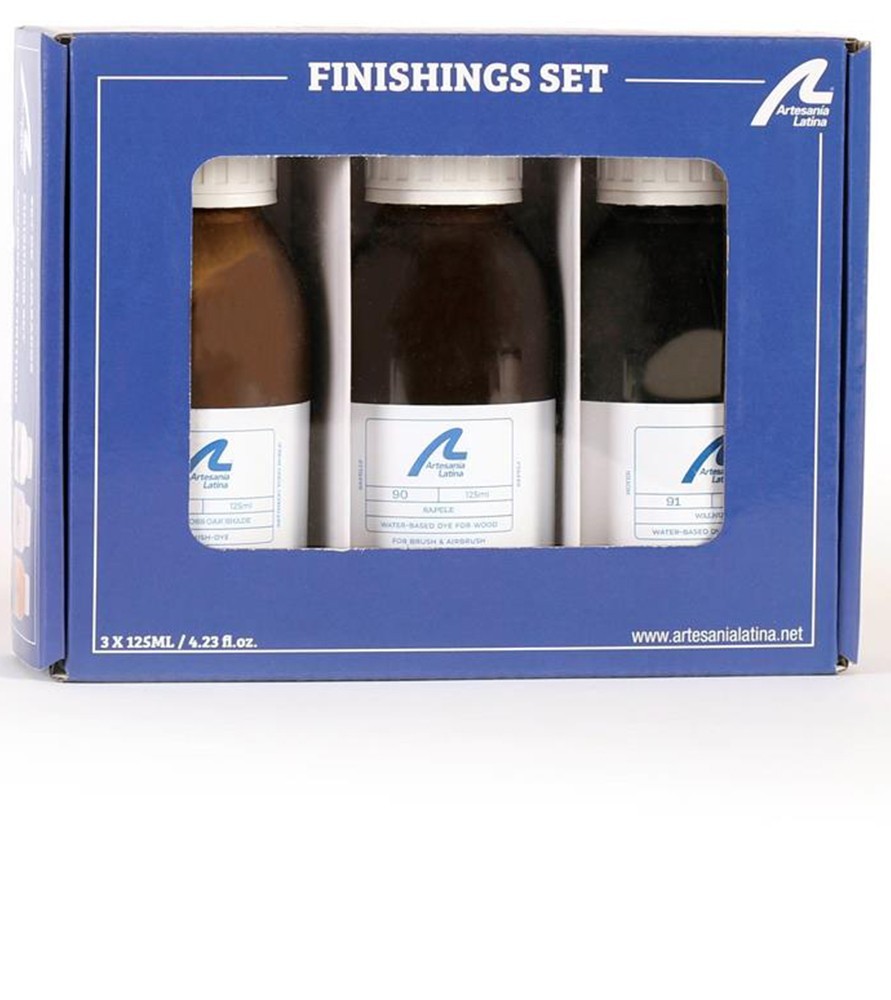Zestaw zawiera bejce wyprodukowane przez firmę Artesania Latina przeznaczone do malowania modeli żaglowców.