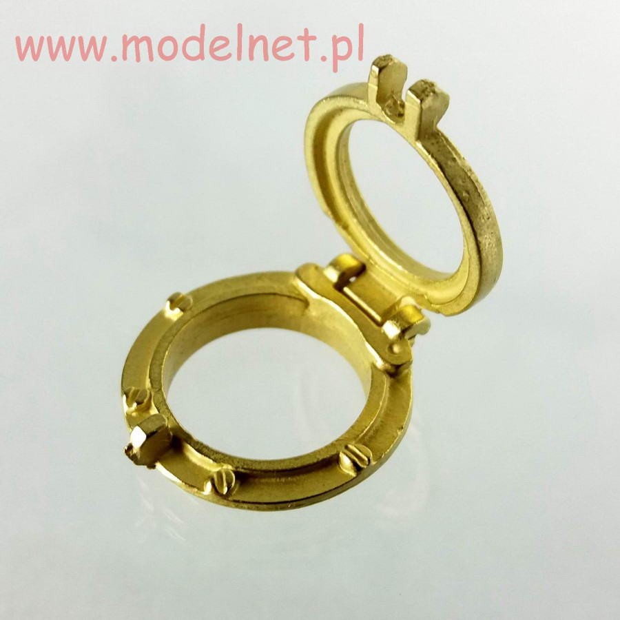 The porthole consists of two elements and can be glued in the "open" position. The porthole is made of metal colored brass and does not contain glass.