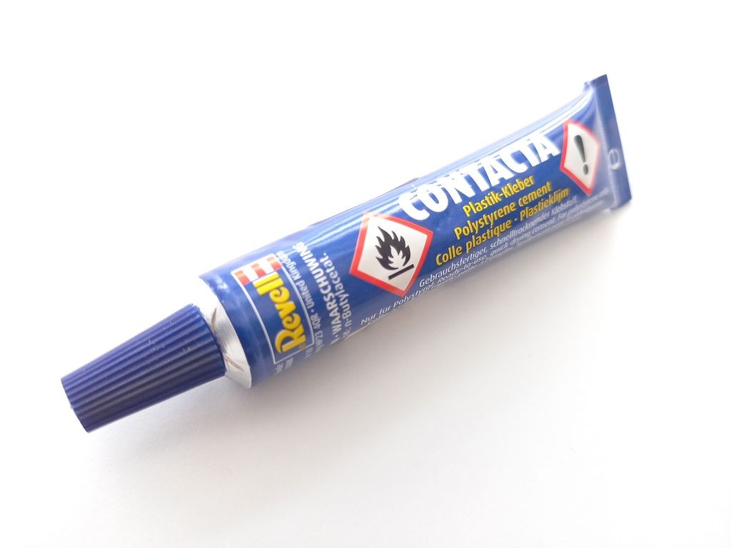 Modeling cement in a tube with a capacity of 13 grams from Revell. The glue is intended for gluing polystyrene and plastic models.