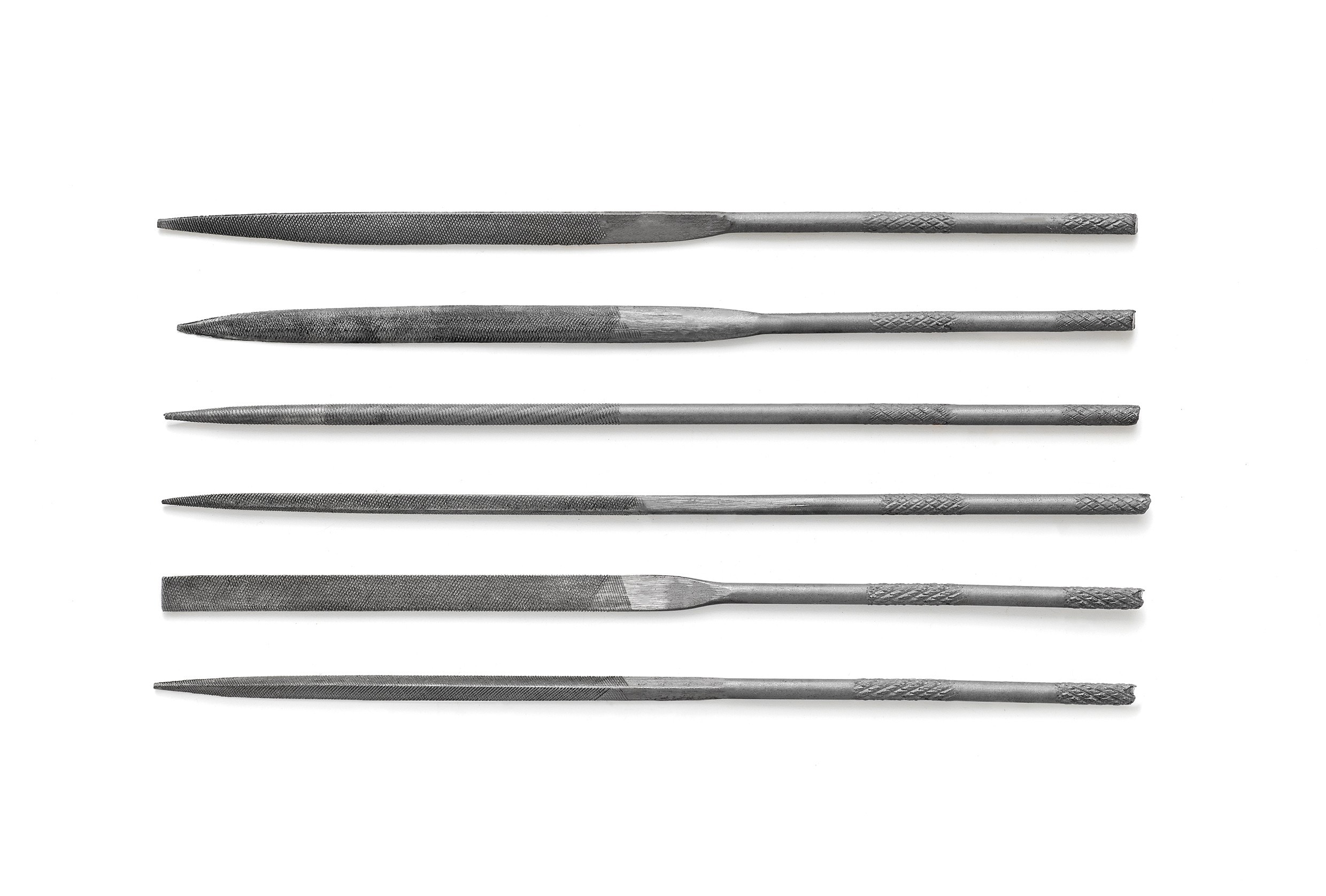 Set of 5 diamond needle files. The files have different sections and their total length is approximately 14 cm. The length of the working part of the conifers is about 5 cm. The files are intended mainly for machining metal parts.