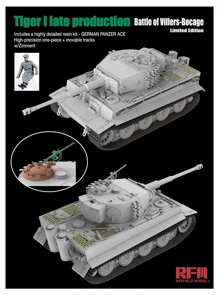 Tank Tiger I late with figure - battel of Villers-Bocage