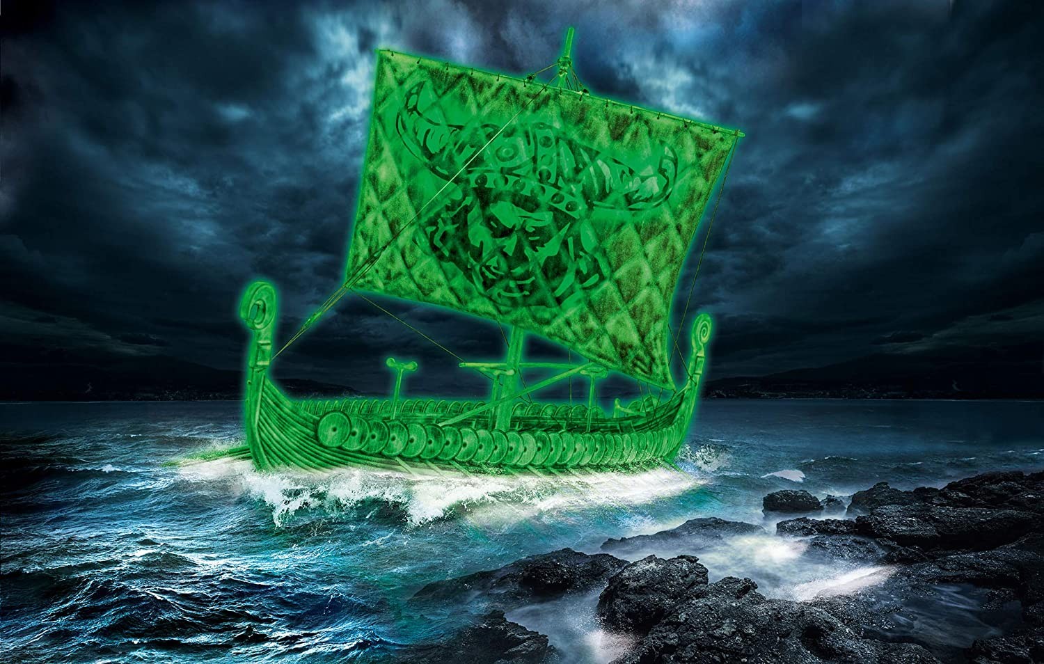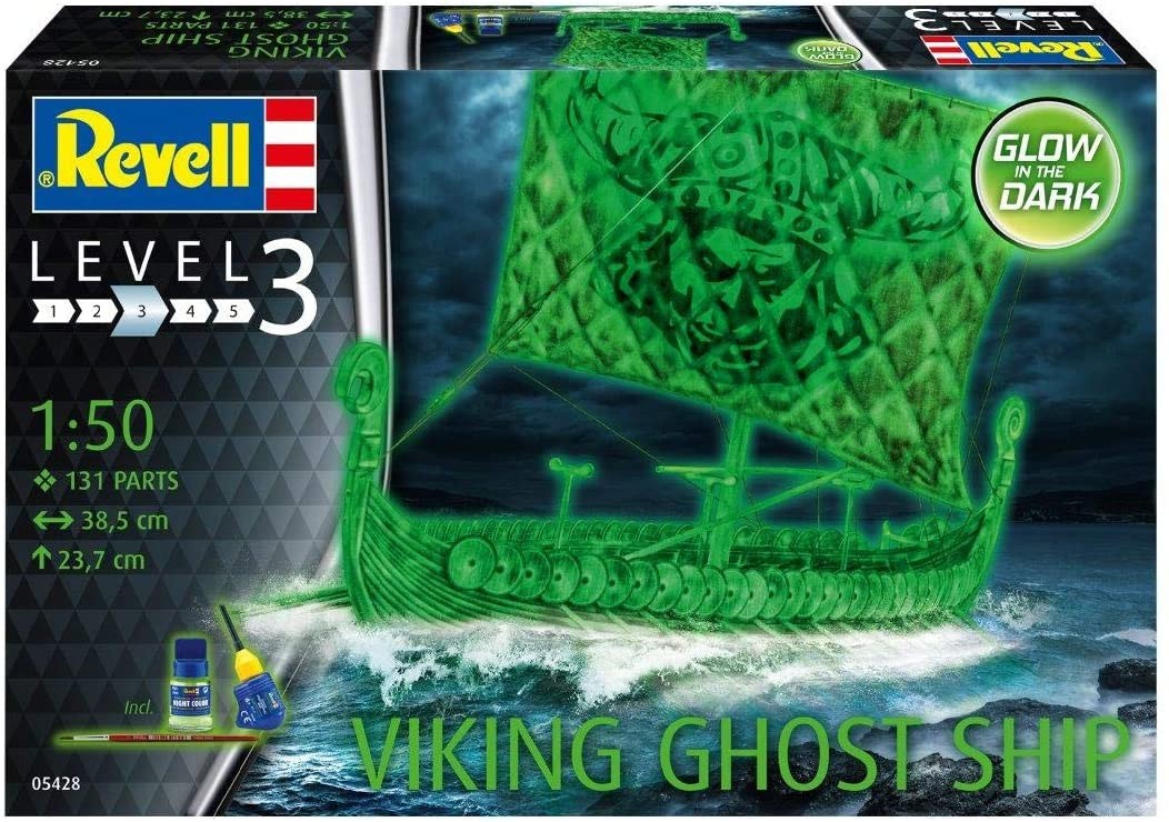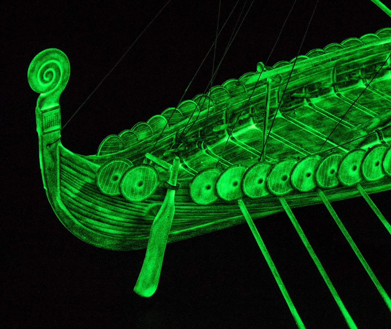 The set has a fluorescent paint thanks to which, after painting, the Viking boat model will glow in the dark.