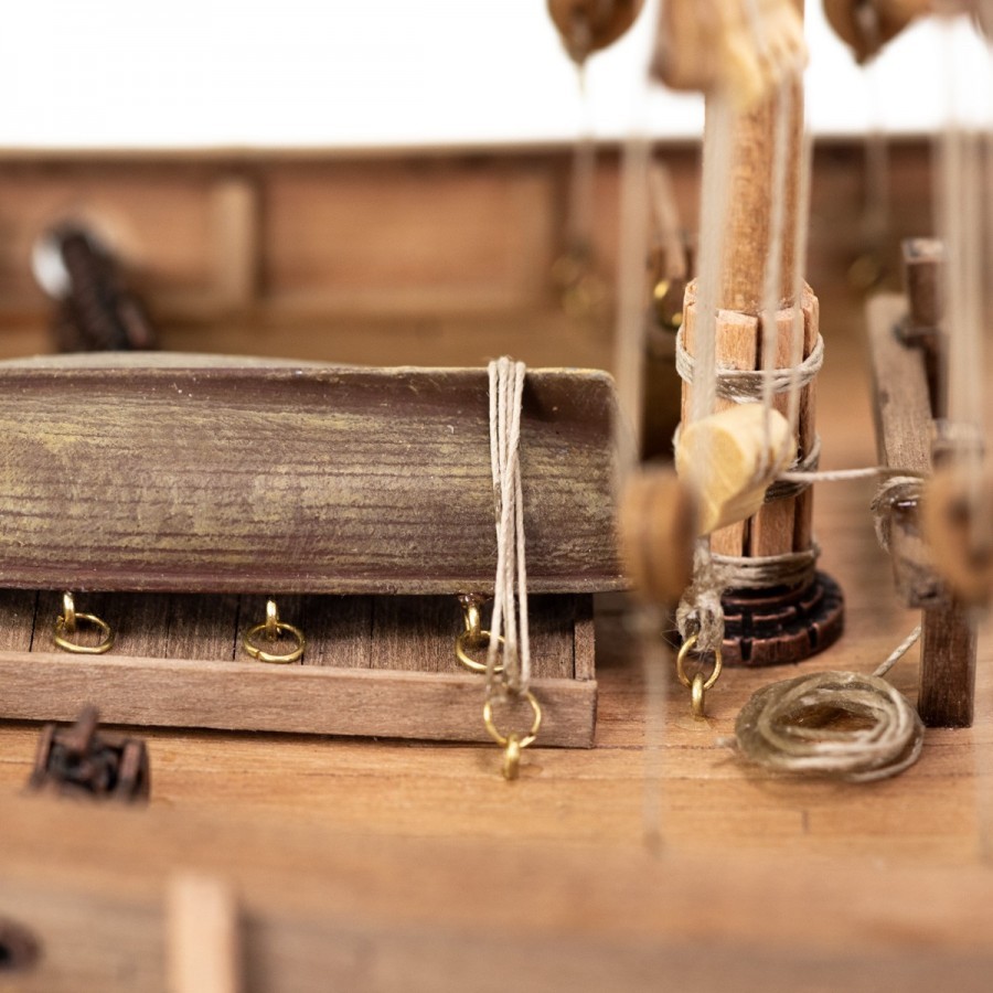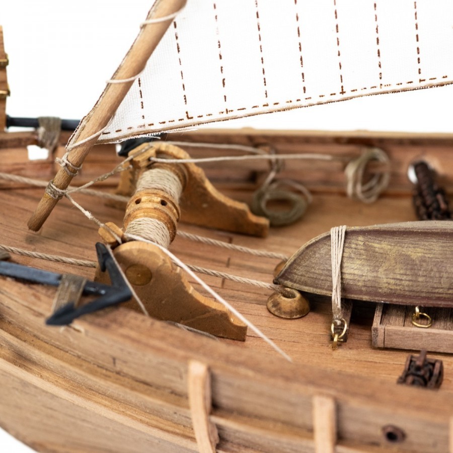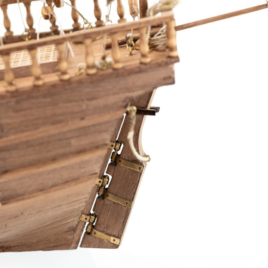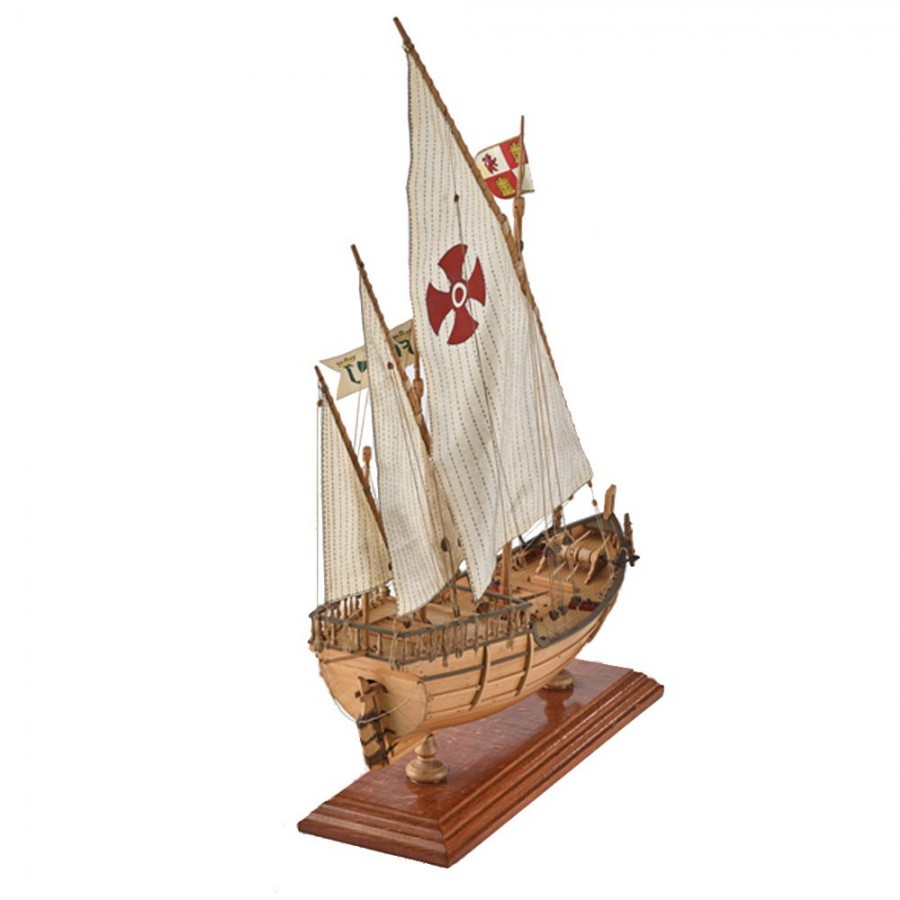 The Redonda caravel (originally a Latina caravel), which was Nina, is a strong, shallow-draft ship, three-masted, two masts with square sails and one with Latin. Nina was rebuilt into the Redonda caravel on Las Palmas just before Columbus' voyage to India with Santa Maria and Pinta. Such sails guaranteed successful downwind sailing across the Atlantic. The caravels were armed with several larger and smaller cannons. The original name of this caravel was Santa Clara. According to Spanish custom, the ship was named after the owner, and the owner was Juan Nino de Moguer. Columbus with a group of three caravels: Santa Maria, Pinta and Nina set off on August 3, 1942 from Palos on his famous expedition. At the destination (unplanned because it was not India), the flagship Santa Maria landed on the reef. Part of the crew was building a fort from the remains of Santa Maria, while Columbus on the now flagship caravel Nina, together with the Pinta on January 16, 1493, set off on their way back to Spain, encountering a strong storm that separated the two units. Ultimately, both caravels reached Spain in March this year. Columbus, already as the Admiral of the Ocean, prepared the next expedition to the west. The flagship was the newly built Santa Maria. Nina, accompanied by 16 other caravels, left Cadiz in September 1943 and reached the Dominican Republic in early November of that year. After returning to Spain, Columbus was preparing a third voyage to the west, when Nina's captain Alonzo Mendel sailed to Rome, but in the Mediterranean Sea he fell into the hands of pirates who imprisoned the captain and took Nina. After the fight with the pirates, the determined crew recovered the ship, the captain did not survive this adventure. The ship returned to Cadiz and embarked on its third expedition to the Caribbean. The further fate of the Nina caravel is unknown.
