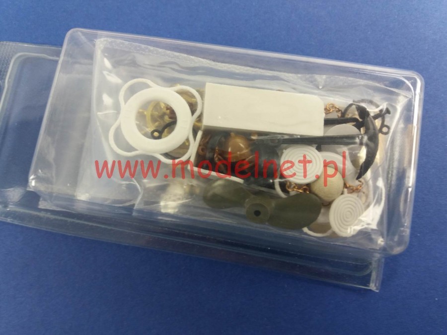 Zestaw zawiera wszystkie elementy potrzebne do budowy modelu, w tym m.in.: