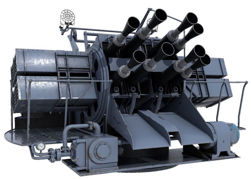 - 8-lufowy zestaw armat 2-funtowych kal. 40 mm Mark VIII - plany i model 3D