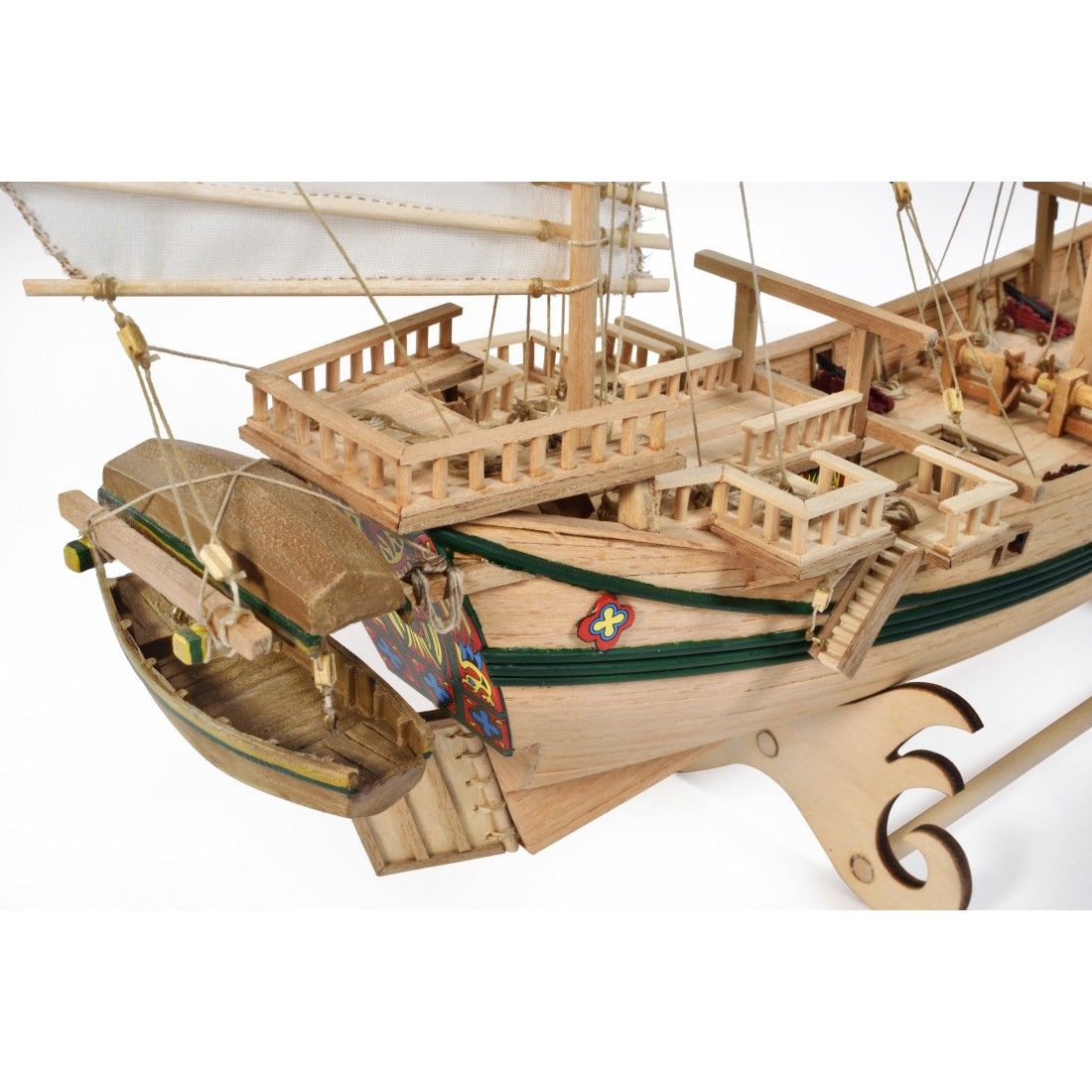 Model drewniany żaglowca nie zawiera farb, lakieru i kleju.