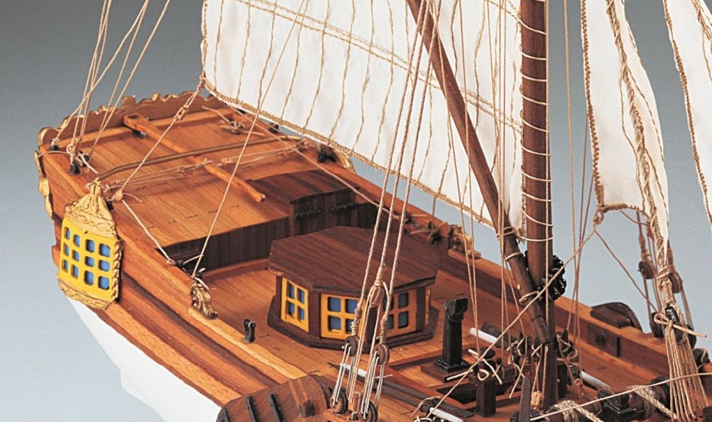 Model drewniany żaglowca nie zawiera lakieru, kleju i farb.