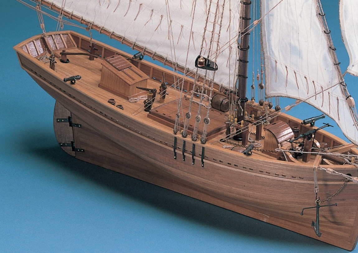 Model drewniany żaglowca nie zawiera lakieru, kleju i farb.