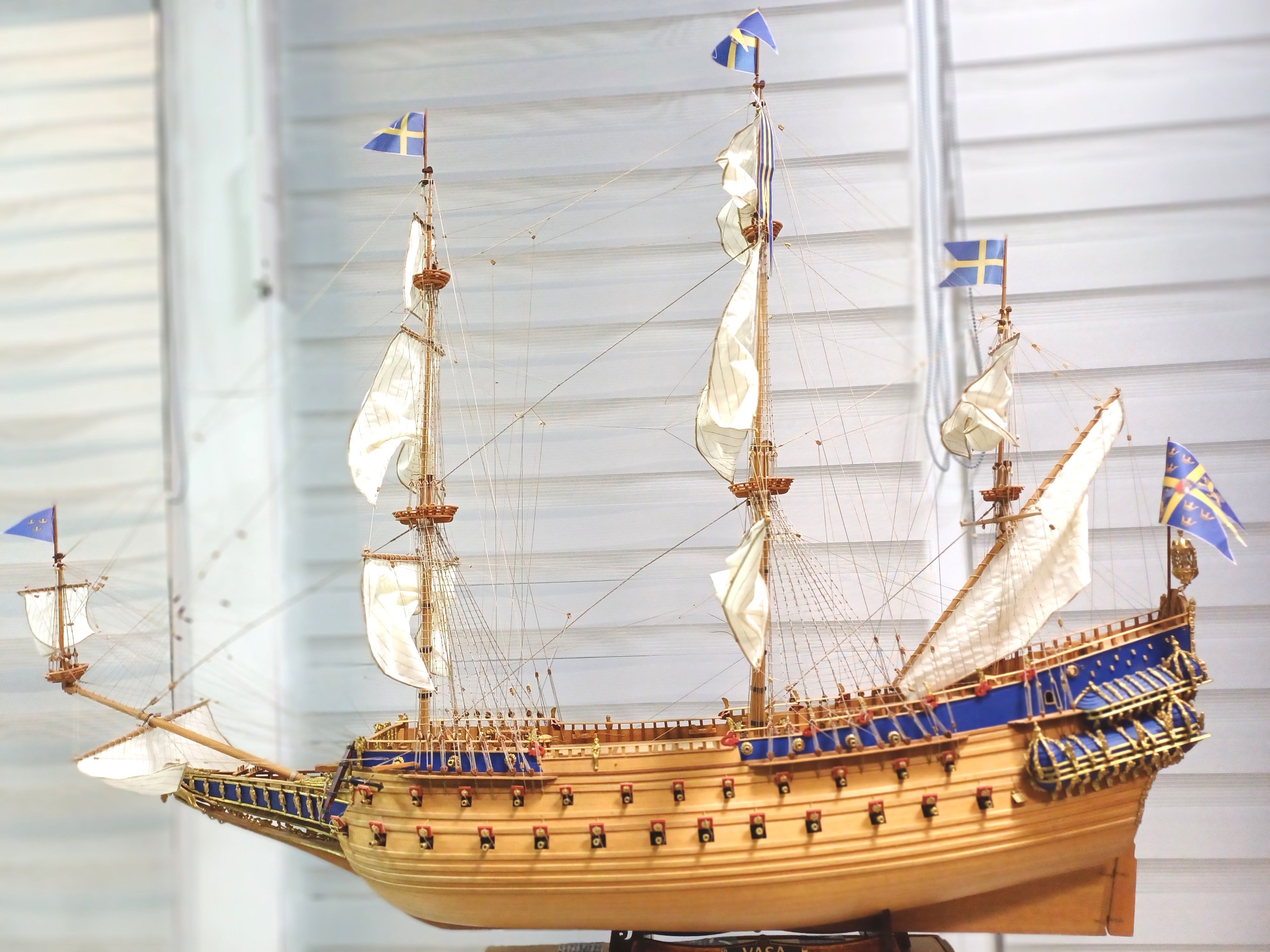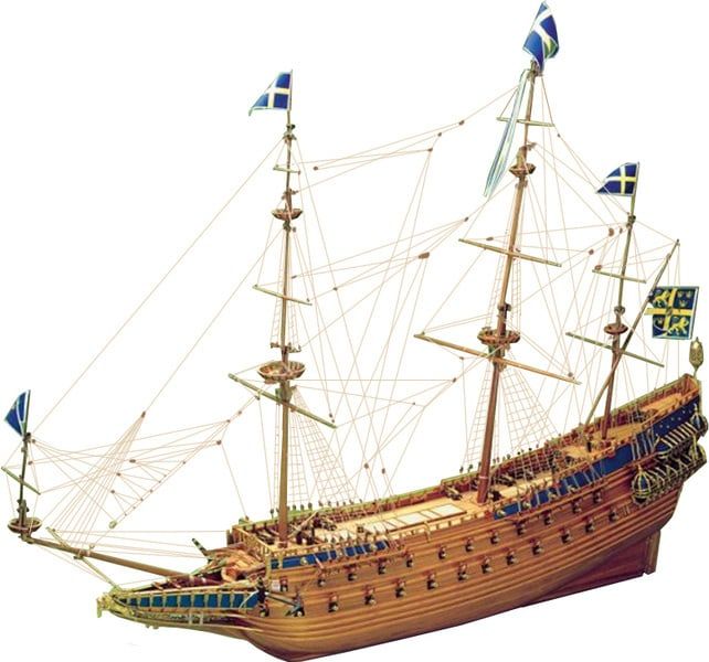 Galeon Wasa (Vasa) budowany był latach 1626 -1628, w czasie kiedy trwała wojna o panowanie nad ujściem Wisły między Szwecją a Polską. Wytyczne do projektu galeonu dał osobiście król Szwecji Gustaw II Adolf. Galeon ten miał być godny króla Szwecji i zapewnić mu panowanie na Bałtyku. Wykonany został z drewna dębu i bogato zdobiony w rzeźby bohaterów z mitologii i rzymskich cesarzy. Z uwagi na fakt że trwała wojna z Polską, powyżej latryn marynarzy umiejscowiono rzeźby polskich szlachciców w charakterystycznych kontuszach z podgolonymi głowami przycupniętych pod ławą. Miało to związek z polskim zwyczajem karania oszczerców – mieli odszczekiwać swoje łgarstwa siedząc pod ławą jak psy. Według króla takim łgarstwem było uznawanie Zygmunta III Wazy za króla Szwecji. 10 sierpnia 1628 roku Wasa wypłynął po raz pierwszy z miejsca budowy ale już po przepłynięciu niecałej mili okręt uderzony wiatrem przewrócił się i spektakularnie zatonął.