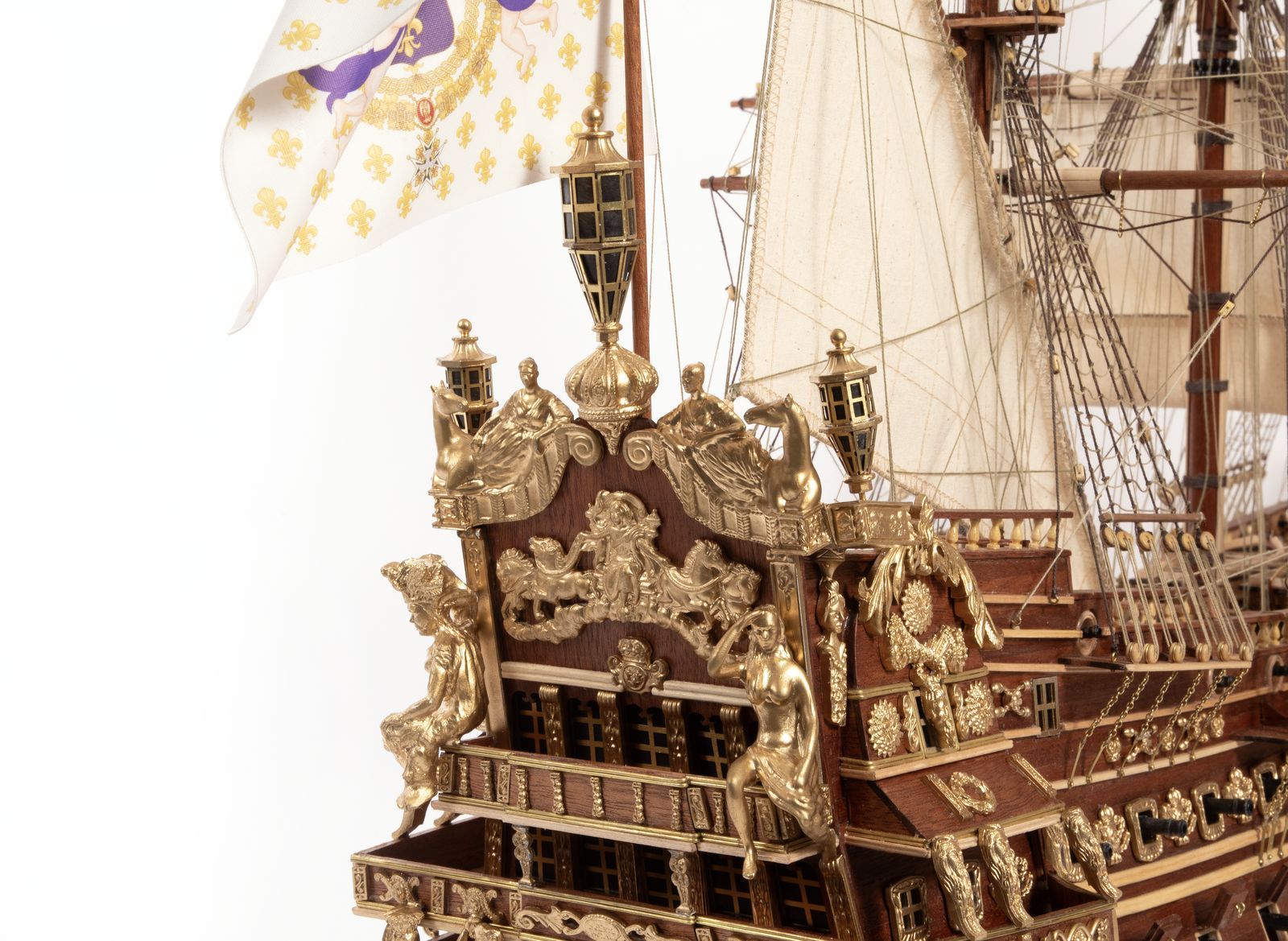 Żaglowiec Le Soleil Royal (fr. Królewskie Słońce ) został zbudowany i zwodowany w Breście w roku 1669. Jego wynosiła około 60 m a uzbrojenie stanowiło 112 dział o różnym kalibrze umieszczonych na trzech pokładach działowych. Załoga składała się aż z 836 ludzi. Uwagę współczesnych zwracała artystycznie i bogato rzeźbiona rufa.