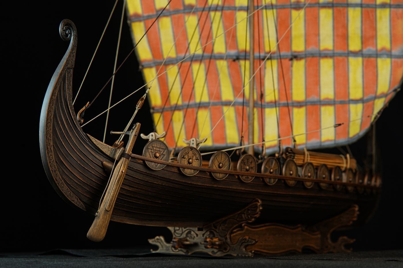 Zestaw jest zmniejszoną wersją modelu łodzi wikingów z Oseberg w skali 1/25.
