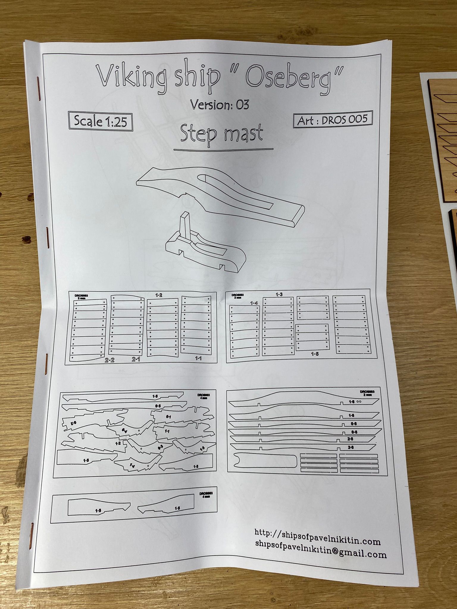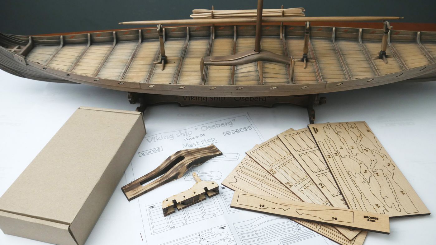 Zestaw waloryzacyjny do modelu łodzi z Oseberg w skali 1/25. Przeznaczony jest do wykonania modyfikacji w modelu łodzi firmy Ships of Pavel Nikitin.