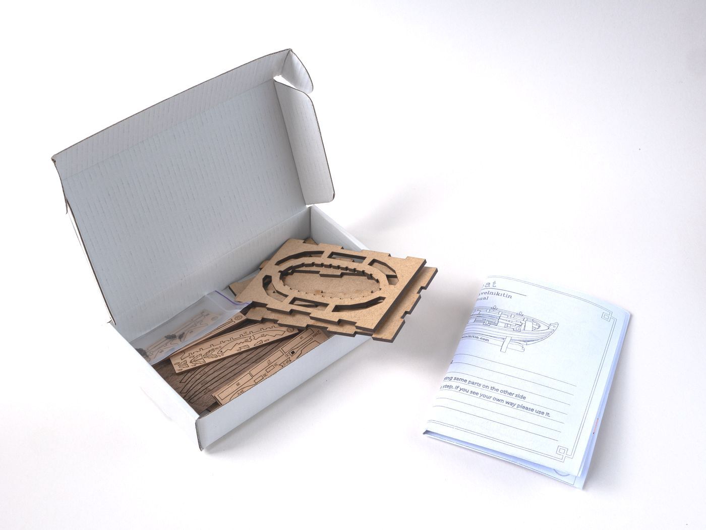 Model drewniany łodzi nie zawiera lakieru i kleju.