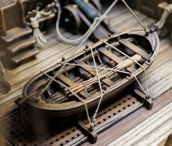 Model łodzi okrętowej z XV-XVI wieku zrekonstruowany w oparciu o dostępne źródła. Tego typu szalupa mogła znajdować się na pokładzie wielu żaglowców z XV-XVI wieku, w tym karakach i galeonach i służyła m.in. do komunikacji statku z lądem w miejscach gdzie nie było portu. Główną cechą tej łodzi jest brak pawęży, co było powszechne w łodziach z późniejszych epok.