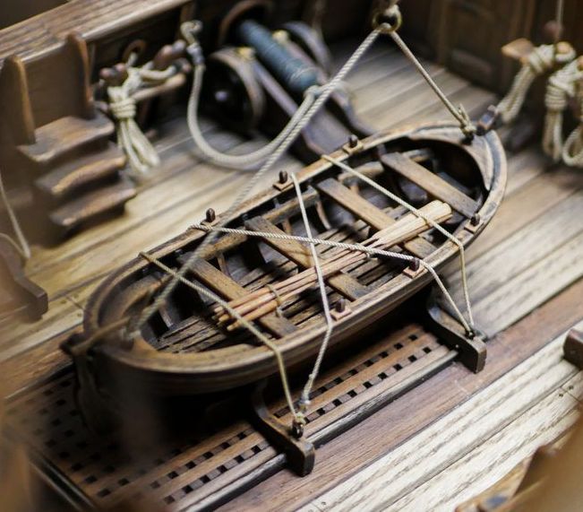 Model łodzi okrętowej z XV-XVI wieku zrekonstruowany w oparciu o dostępne źródła. Tego typu szalupa mogła znajdować się na pokładzie wielu żaglowców z XV-XVI wieku, w tym karakach i galeonach i służyła m.in. do komunikacji statku z lądem w miejscach gdzie nie było portu. Główną cechą tej łodzi jest brak pawęży, co było powszechne w łodziach z późniejszych epok.