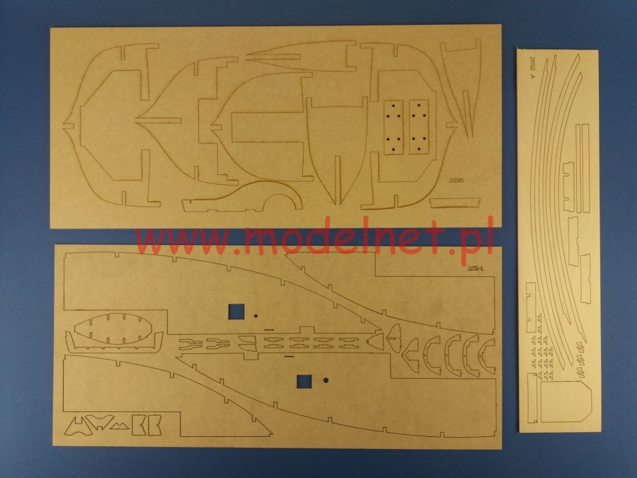 Model do sklejania zawiera wszystkie elementy potrzebne do budowy modelu, w tym m.in.: