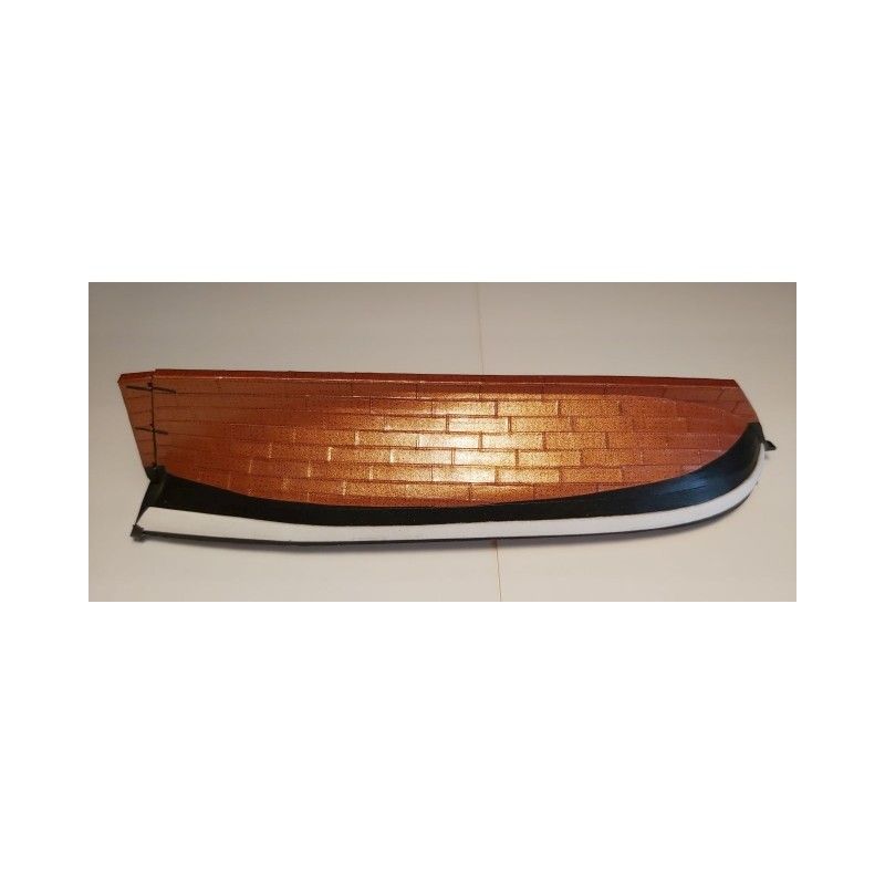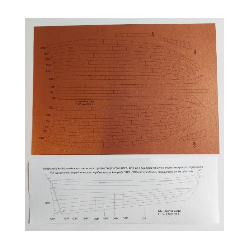 2. pojedyncze płyty miedziane umożliwiające klejenie na zakładkę. Każdą "płytę" należy pojedynczo dopasować do kształtu kadłuba.