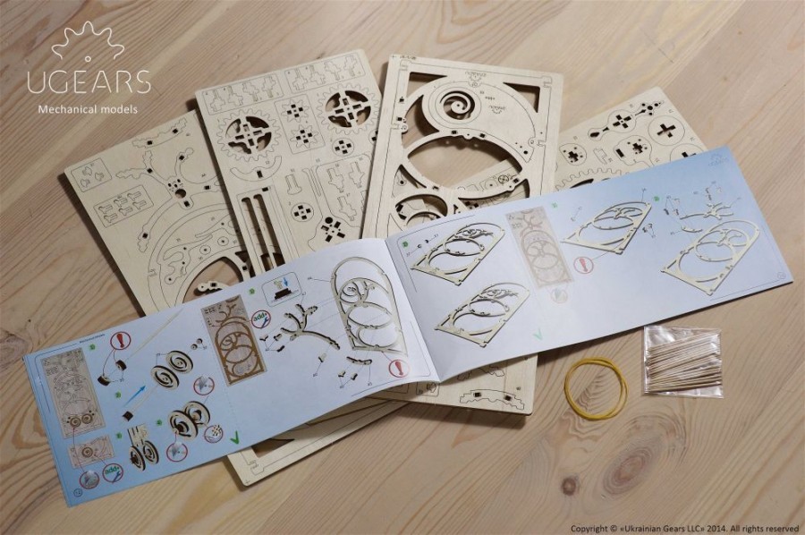 Minutnik ma unikalne wahadło rolkowe i system regulacji amplitudy. Podobnie jak inne modele UGEARS, Minutnik zasilany jest przez zwykłe gumki recepturki.