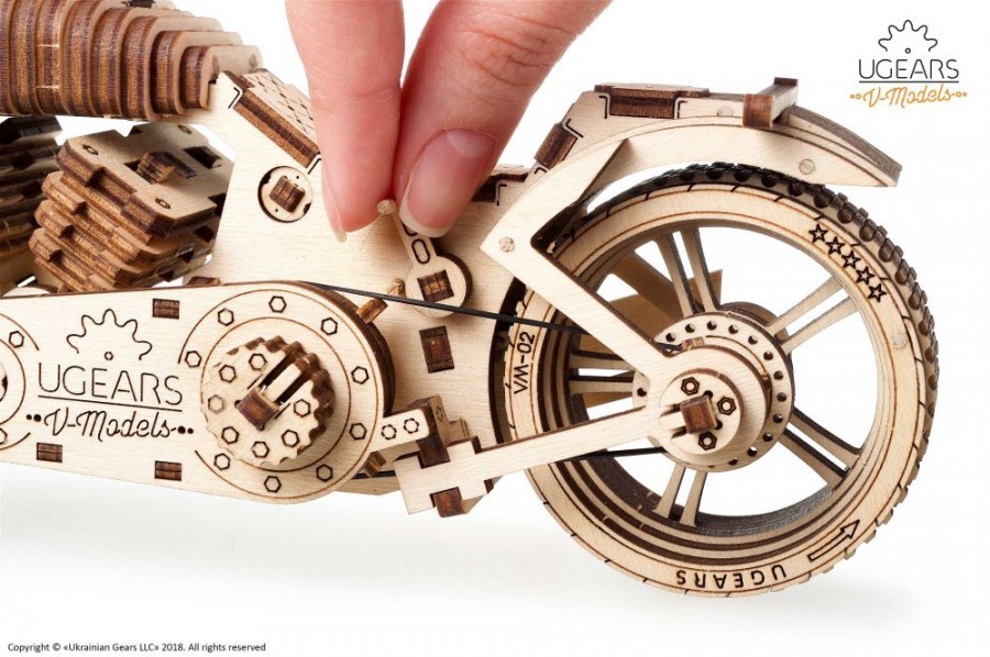 Motocykl to wyzwanie, szybkość, prawdziwa wolność. Złóż model Ugears, poczuj, jak duch drogi rodzi się w twoich rękach. Mocniej trzymaj kierownicę i oddychaj pełną piersią powietrzem szybkościowej autostrady z Twoim motocyklem od Ugears.