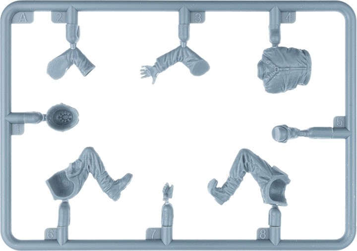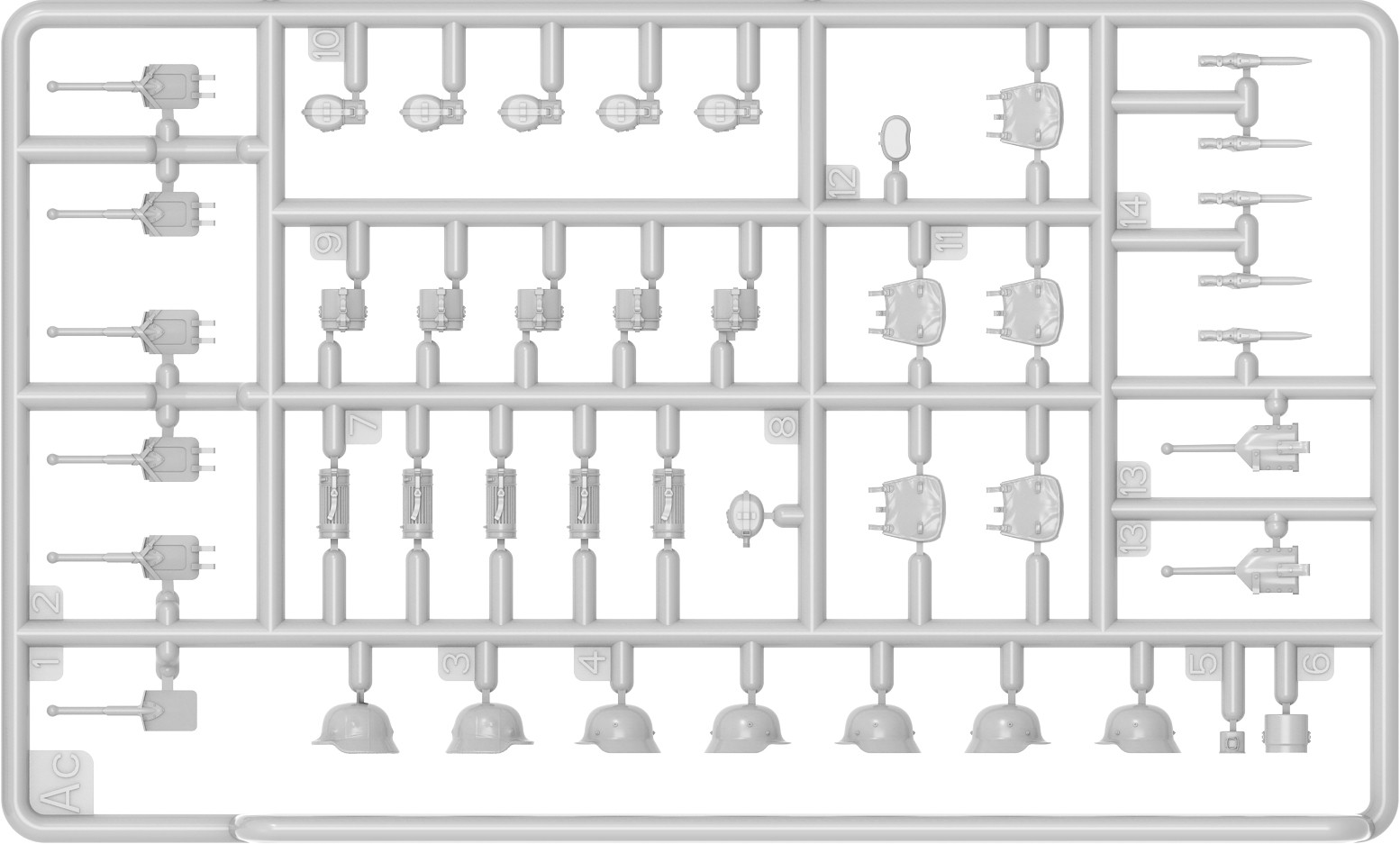 Model plastikowy do sklejania zawiera wszystkie elementy potrzebne do budowy modelu, w tym m.in.: