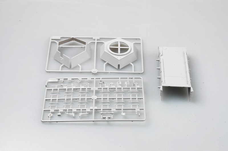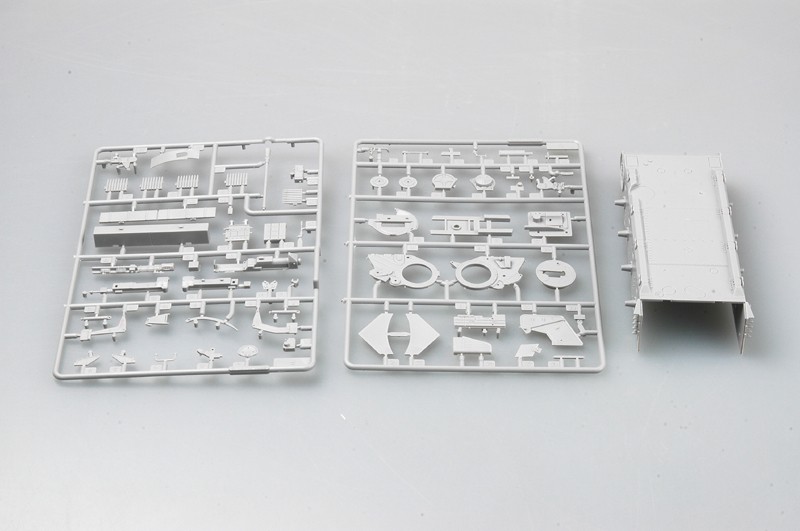 Model plastikowy do sklejania zawiera wszystkie elementy potrzebne do budowy modelu, w tym m.in.: