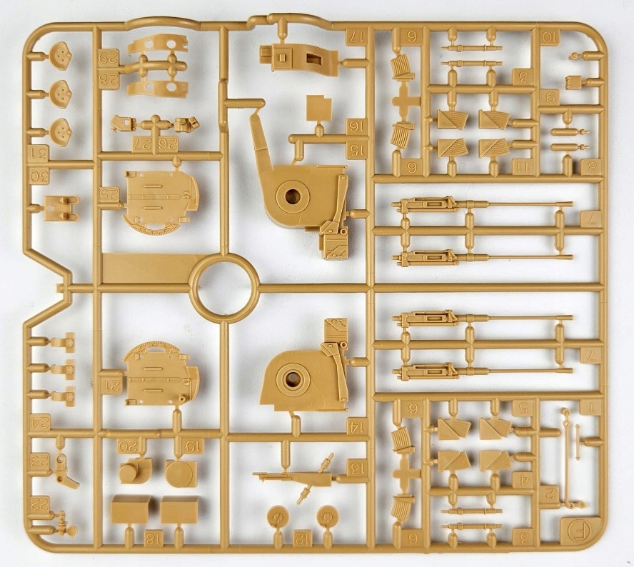 Model plastikowy do sklejania zawiera wszystkie elementy potrzebne do budowy modelu, w tym m.in.: