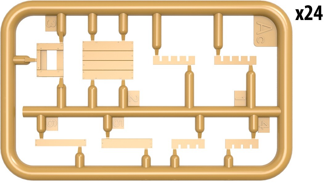 Model plastikowy do sklejania zawiera wszystkie elementy potrzebne do budowy modelu, w tym m.in.: