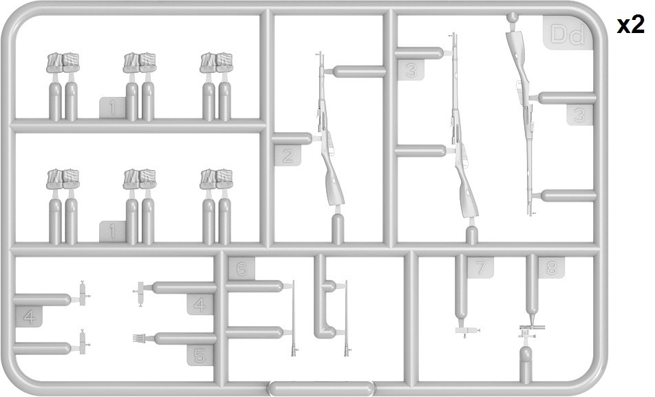 W pierwszej fazie II wojny światowej podstawową bronią piechoty był karabin Mosin M1938, którego konstrukcja została opracowana w końcu XIX wieku, potem modernizowana. Był to karabin powtarzalny z 5 nabojami 7,62x 54mm. Zaopatrzony był w składany bagnet, zasięg skuteczny do 50 m. Ze względu na bagnet i duży odrzut przy oddaniu strzału celność karabinu nie była zbyt wysoka. Był bardziej skuteczny w walce wręcz. Jak opisywała instrukcja służył do niszczenia wroga ogniem, bagnetem i kolbą. Pewną odmianą karabinu Mosina był karabin snajperski z lunetą Mosin –Nagant M1891/30 z dłuższą lufą i bez bagnetu. W drugiej fazie wojny popularna stała się PPSh -41 (Pepesza) pistolet maszynowy z magazynkiem bębnowym na 71szt. naboi pistoletowych 7,62x25mm lub łukowym na 35 naboi. Zasięg do 200 m. Dowódcy wyposażeni byli w pistolety TT -33 z magazynkiem pudełkowym na naboje pistoletowe 7,62x25mm. Skuteczny zasięg do 50 m. Poza wymienioną bronią żołnierze piechoty wyposażeni byli w hełmy, łopatki (saperki) służące do osobistego okopywania się, ale także mogły być wykorzystywane w walce wręcz. Ponadto menażka, manierka (nierzadko wykorzystywana głównie do przechowywania alkoholu) i sztućce. Przed walką żołnierzom wydawano granaty obronne RG 41, RG 42 lub granaty ppanc.RPG 43