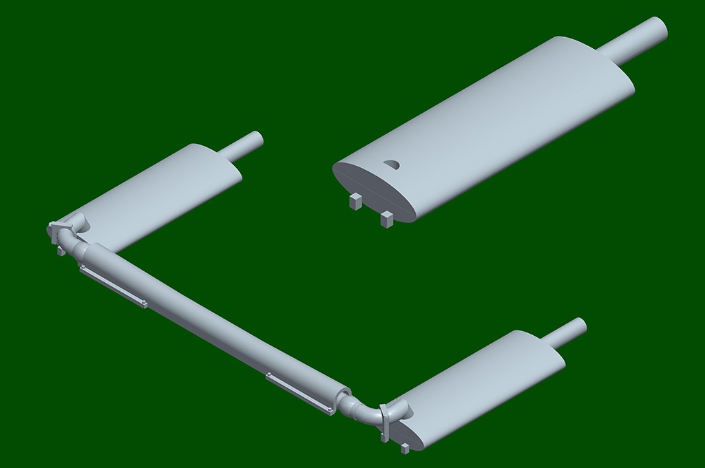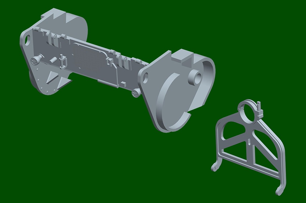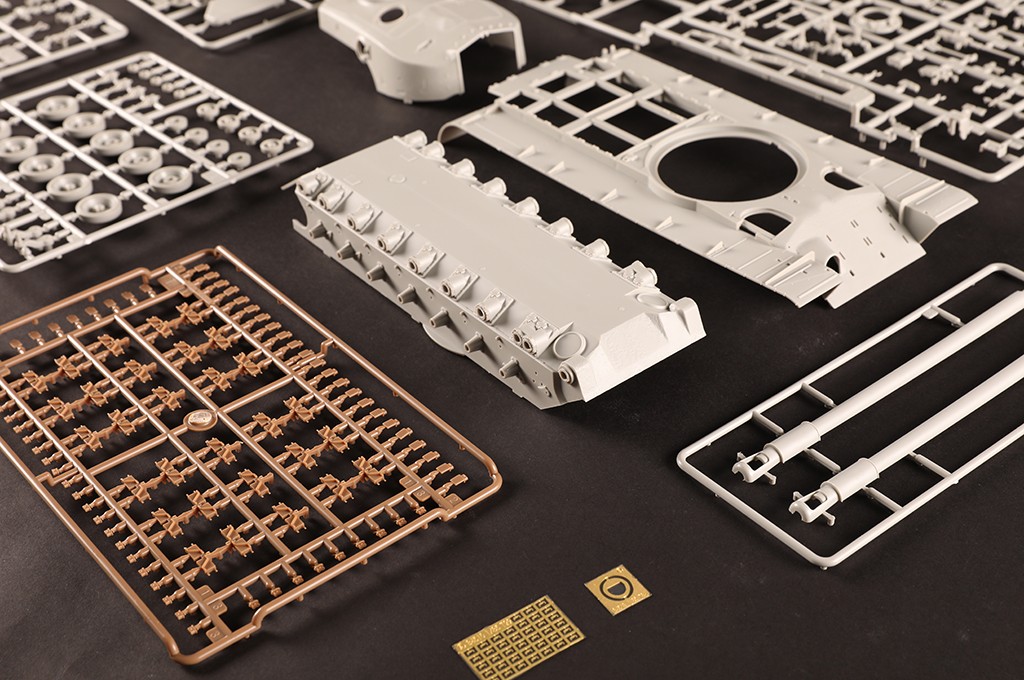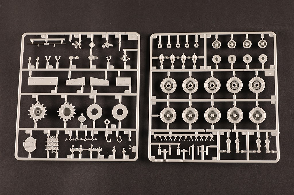 Model plastikowy do sklejania zawiera wszystkie elementy potrzebne do budowy modelu, w tym m.in.: