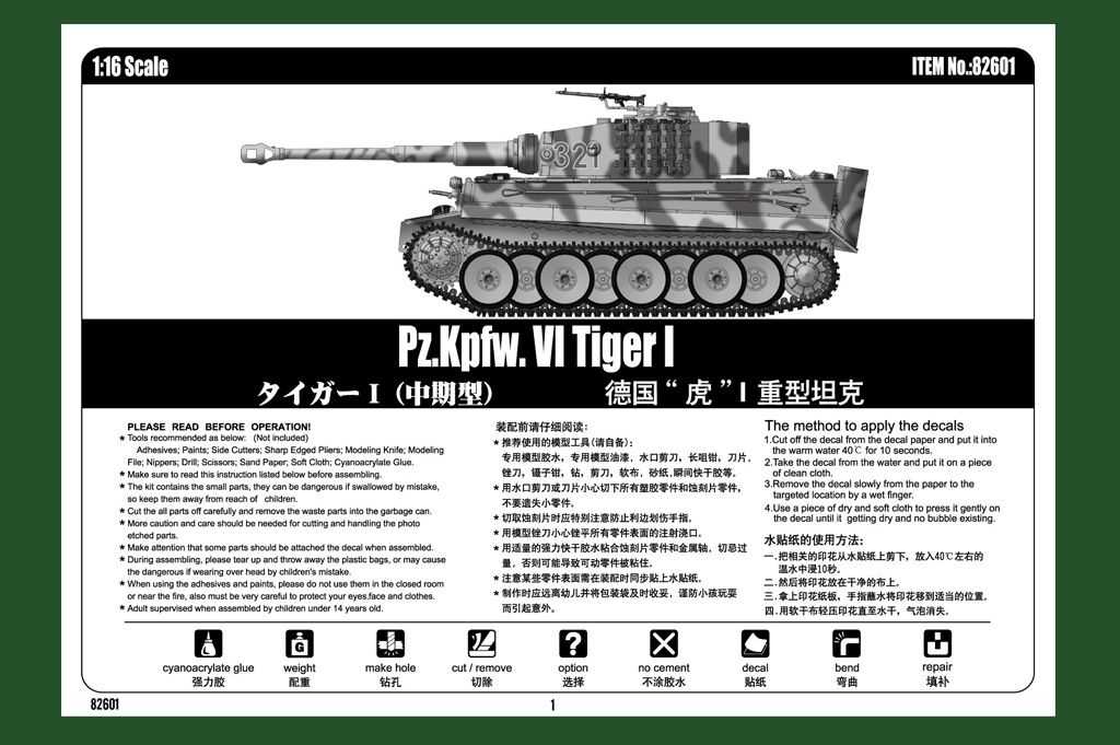 Czołgi ciężkie Tiger produkowane były w latach 1942 -1944 w zakładach Henschel Und Sohn w Kassel. Dane: długość 8,45 m, szerokość 3,7 m, wysokość 2,93 m, masa całkowita 57 ton, trakcja gąsienicowa. Napęd silnik benzynowy dwunasto-cylindrowy V o mocy 700 KM, prędkość na drodze 38 km/h. Załoga pięciu żołnierzy. Uzbrojenie podstawowej wersji: armata 88 mm, trzy karabiny maszynowe 7,92 mm. Opancerzenie od 120 do 25 mm. W ciągu dwóch lat wyprodukowano 1355 tych czołgów. Bazując na doświadczeniach załóg czołgi te były stale modernizowane.