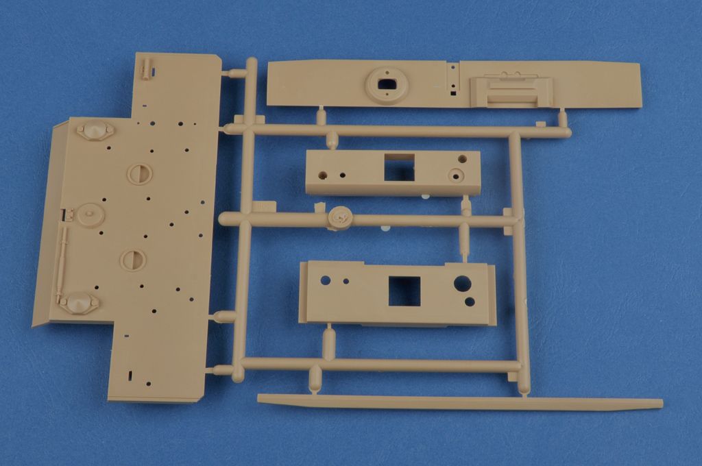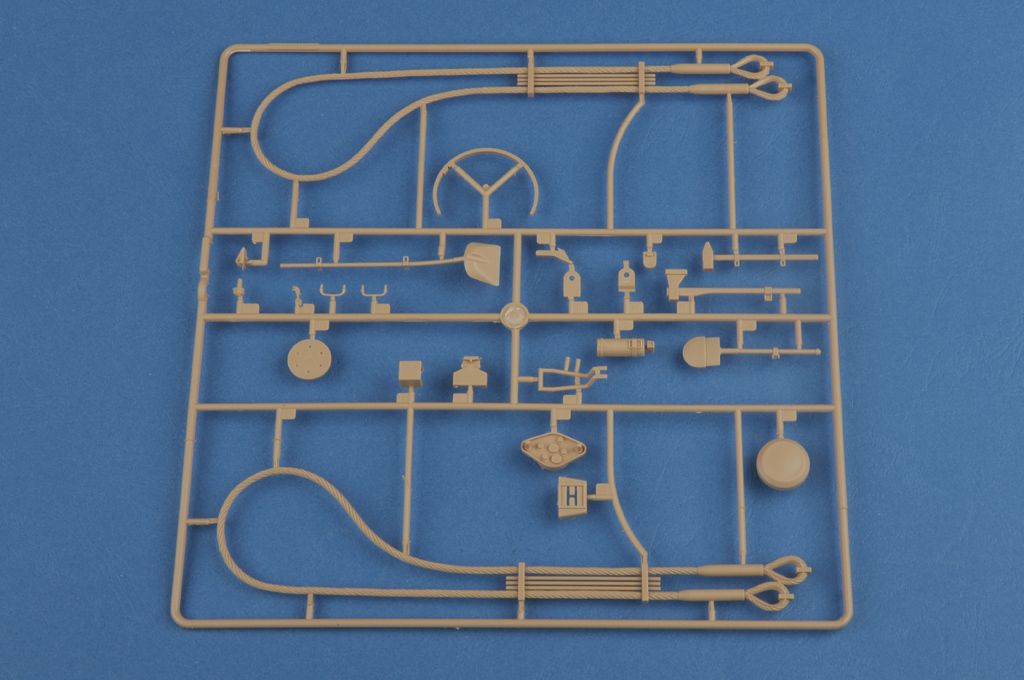 Model plastikowy do sklejania zawiera wszystkie elementy potrzebne do budowy modelu, w tym m.in.: