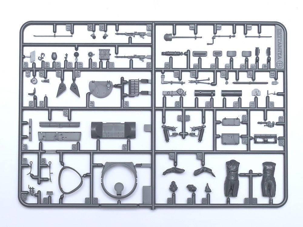 Model plastikowy do sklejania zawiera wszystkie elementy potrzebne do budowy modelu, w tym m.in.: