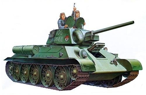 Czołgi T-34 były produkowane w ZSRR w latach 1940 -1957. Przed wybuchem wojny montaż odbywał się w Charkowie i Stalingradzie. Po wybuchu wojny z Niemcami produkcja została przeniesiona za Ural. Dane czołgu: długość 6,68 m, szerokość 3 m, wysokość 2,45 m, masa 26,5 tony, napęd: dwunasto-cylindrowy silnik wysokoprężny widlasty o mocy 500 KM, szybkość 53 km/h. Uzbrojenie: działo 76,2 mm, dwa karabiny maszynowe 7,62 mm. Po doświadczeniach bitwy pod Kurskiem na czołgach zamontowano działo 85 mm skuteczne w walce z niemieckimi Tygrysami. Opancerzenie: 52 mm. Obsada: czterech żołnierzy ( w późniejszych wersjach pięć). Do 1957 roku wyprodukowano około 84000 tych czołgów. Oprócz ZSRR T-34 były używane przez 39 państw wliczając w to Polskę.
