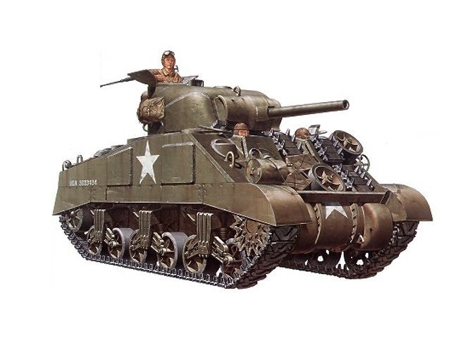 Czołgi średnie M4 Sherman było produkowane w Stanach Zjednoczonych w latach 1942 -1945 przez sześciu producentów. W sumie w tym czasie wyprodukowano 6748 tych czołgów w różnych wersjach. Dane: długość 6,2 m, szerokość 2,62 m, wysokość 2,94 m, napęd: silnik gwiazdowy benzynowy dziewięcio-cylindrowy o mocy 400 KM. Gdy okazało się, że czołgi te łatwo zapalały się po trafieniu pociskiem w silnik, zmieniono silniki i konstrukcję komór amunicyjnych. Problem został rozwiązany. Szybkość w terenie 40 km/h. Załoga pięciu żołnierzy. Uzbrojenie: armata 75 mm (później długolufowa 76 mm), wielkokalibrowy karabin maszynowy 12,7 mm, dwa karabiny maszynowe 7,62 mm, opancerzenie 56 mm przód do 38 mm tył i boki.