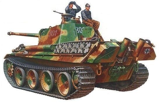 Czołgi średnie Panther produkowane były w latach 1942 -1945 w zakładach MAN Daimler Benz. Dane: długość 8,86 m, szerokość 3,43 m, wysokość 3,1 m, masa całkowita 44,8 tony, trakcja gąsienicowa. Napęd silnik benzynowy dwunasto-cylindrowy V o mocy 700 KM, prędkość na drodze 46 km/h. Załoga pięciu żołnierzy. Uzbrojenie podstawowej wersji: armata 76 mm, dwa karabiny maszynowe 7,92 mm. Opancerzenie od 110 do 45 mm. W ciągu trzech lat wyprodukowano 5992 Panther. Bazując na doświadczeniach załóg czołgi te były stale modernizowane.