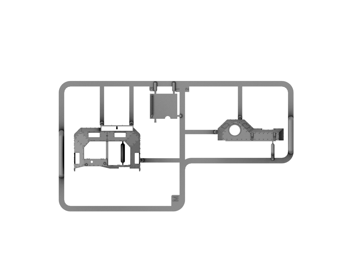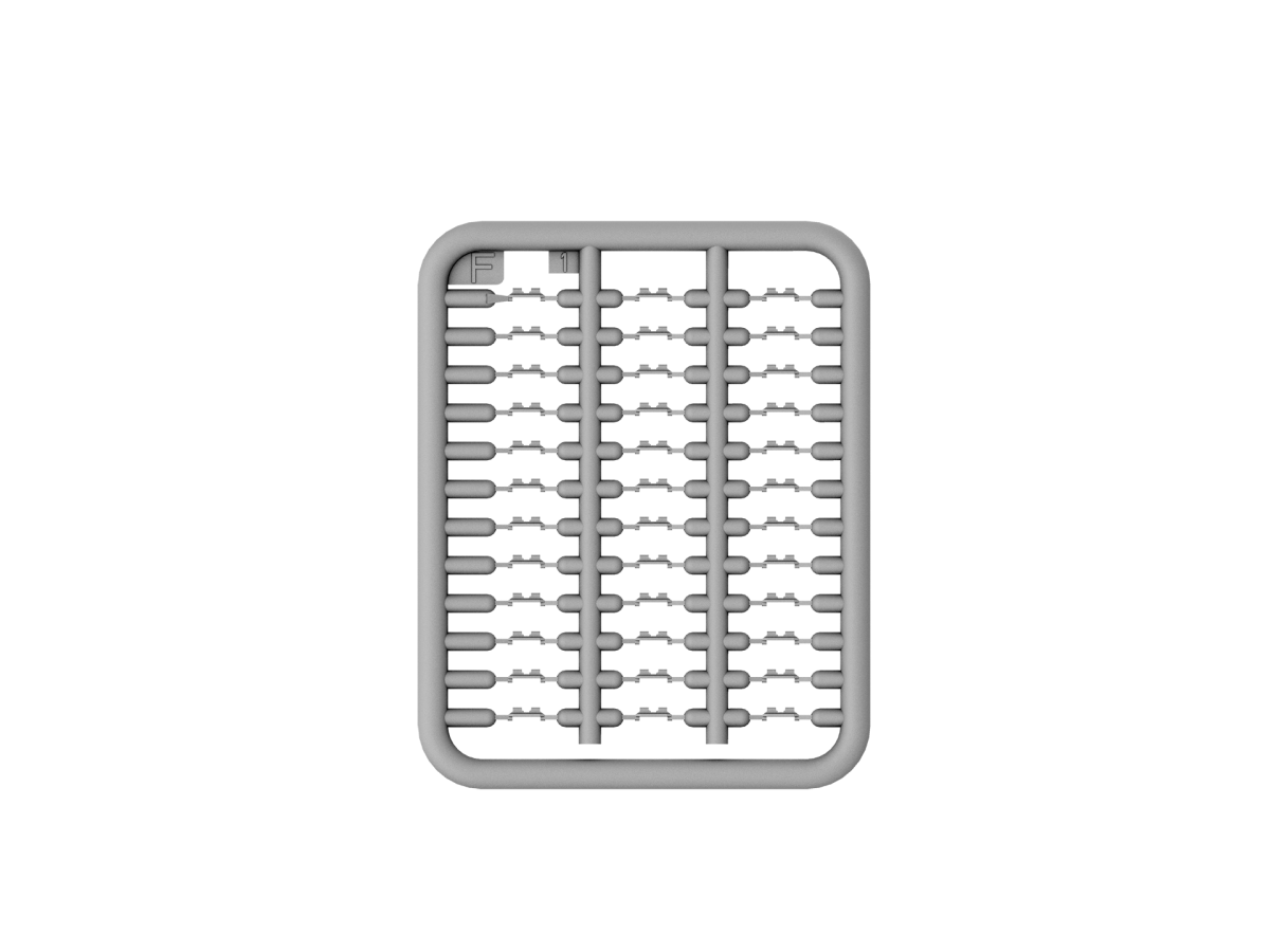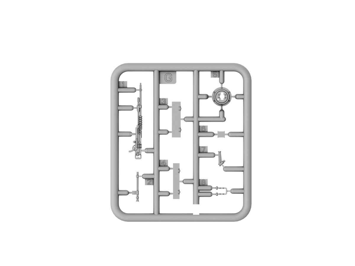 Model plastikowy do sklejania zawiera wszystkie elementy potrzebne do budowy modelu, w tym m.in.: