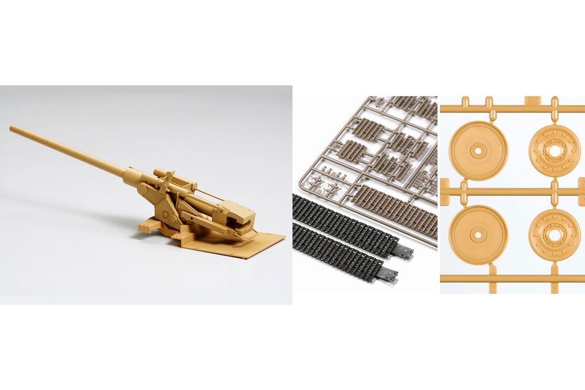 Model plastikowy do sklejania zawiera wszystkie elementy potrzebne do budowy modelu, w tym m.in.: