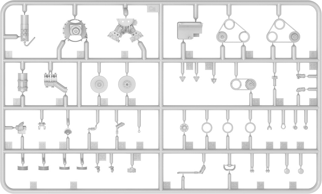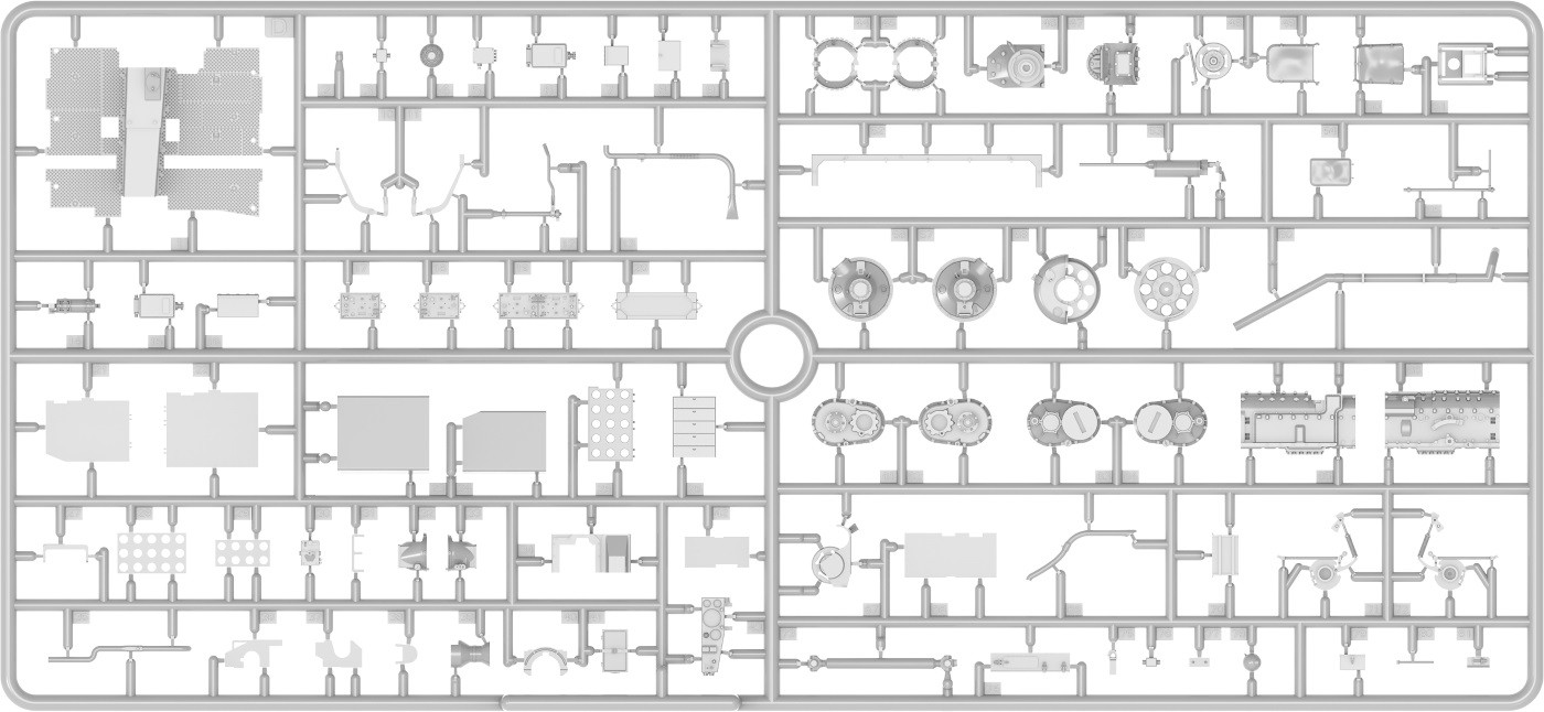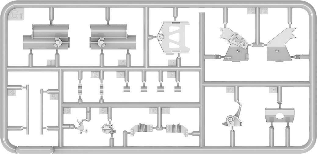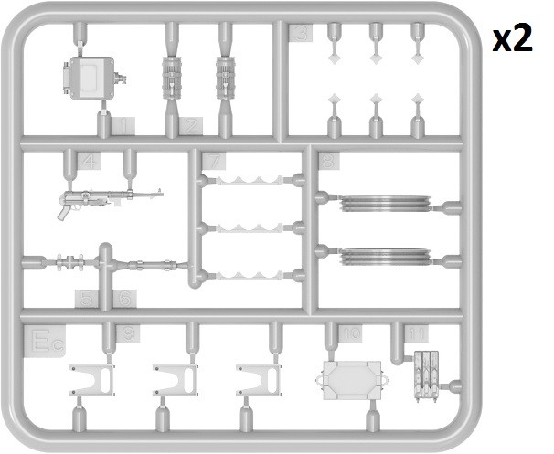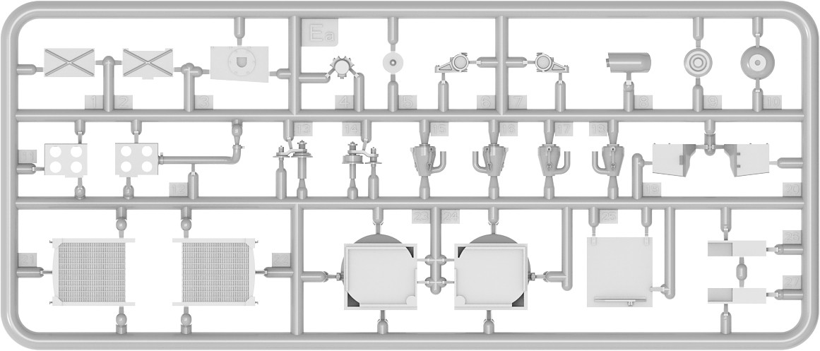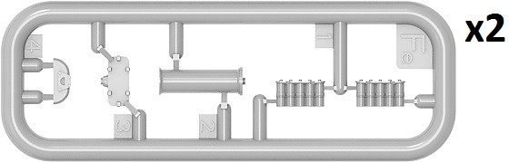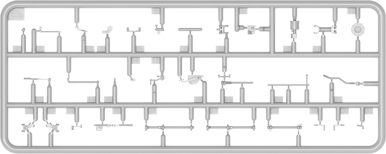 Model plastikowy do sklejania zawiera wszystkie elementy potrzebne do budowy modelu, w tym m.in.: