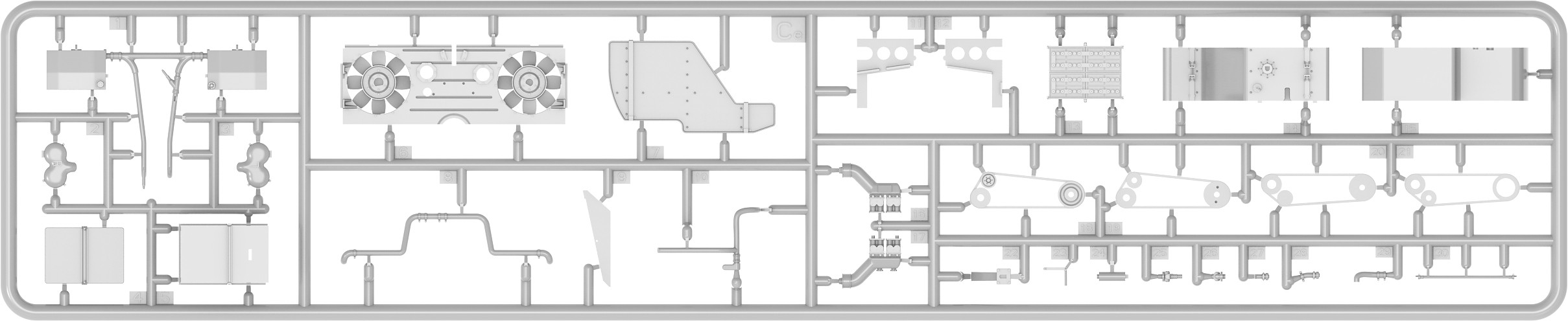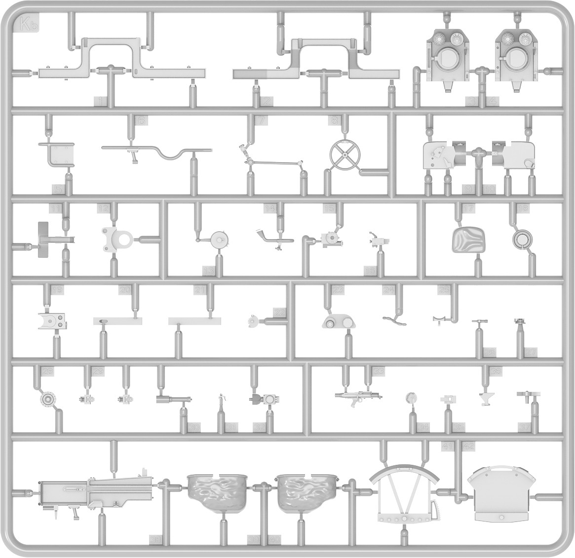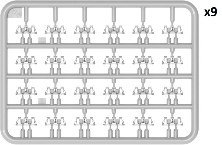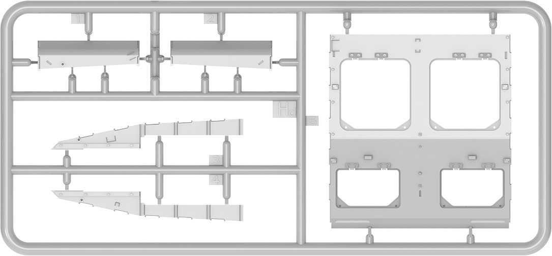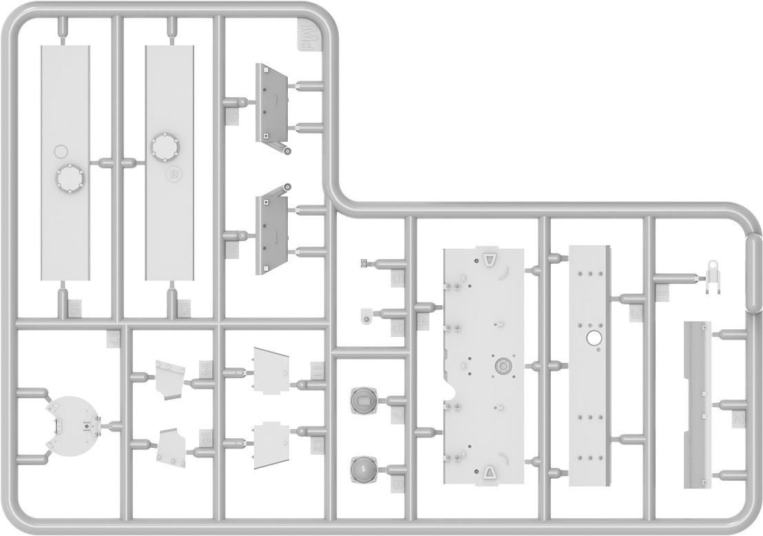 Model plastikowy do sklejania zawiera wszystkie elementy potrzebne do budowy modelu, w tym m.in.: