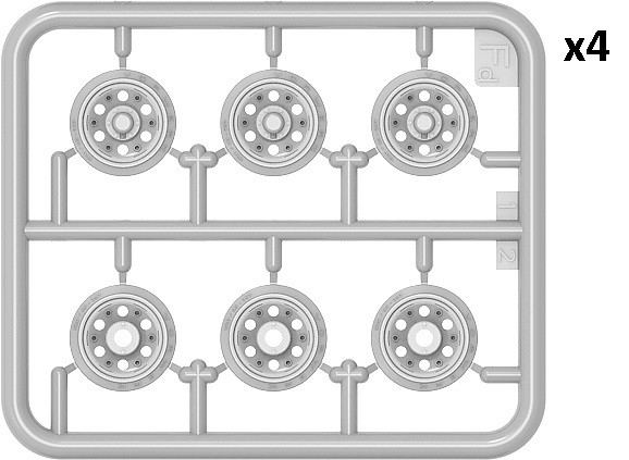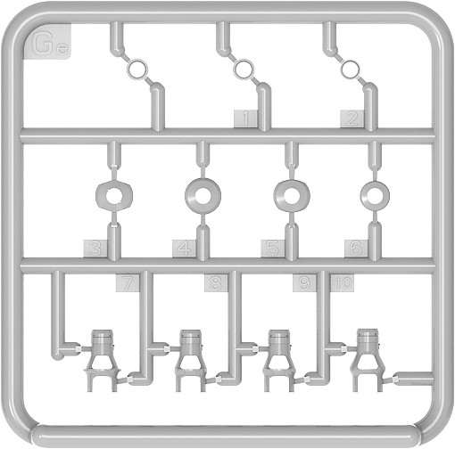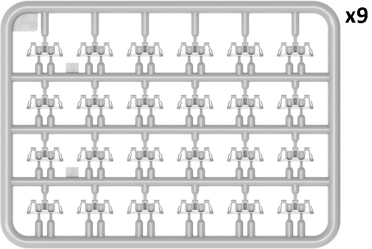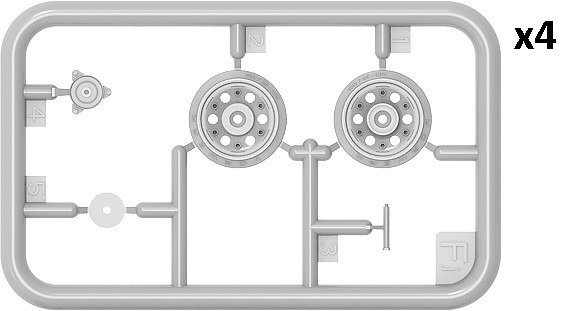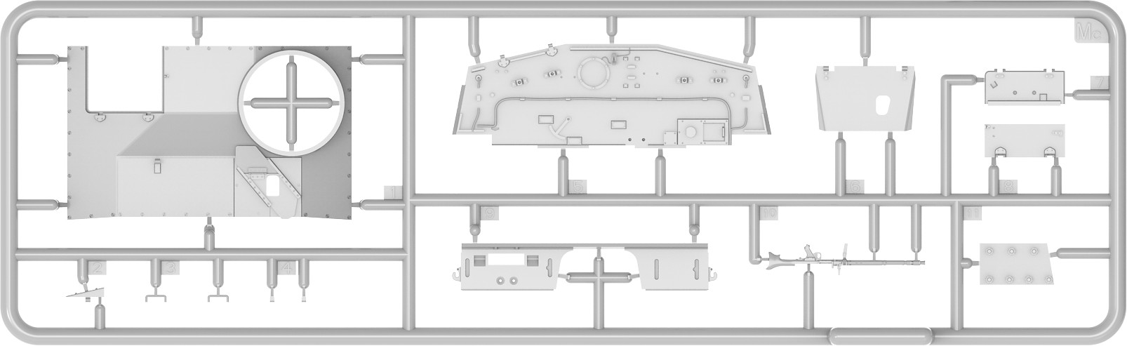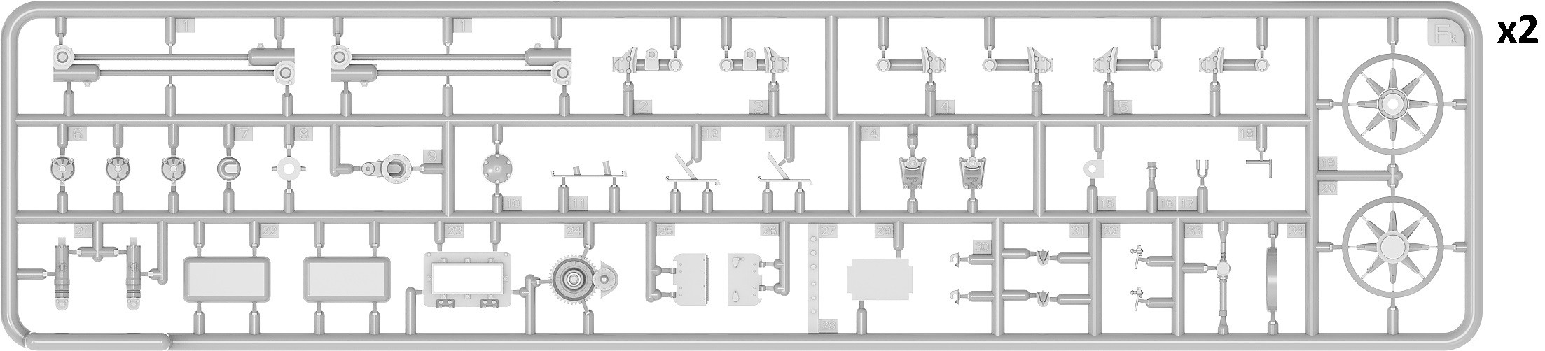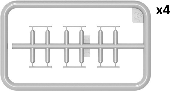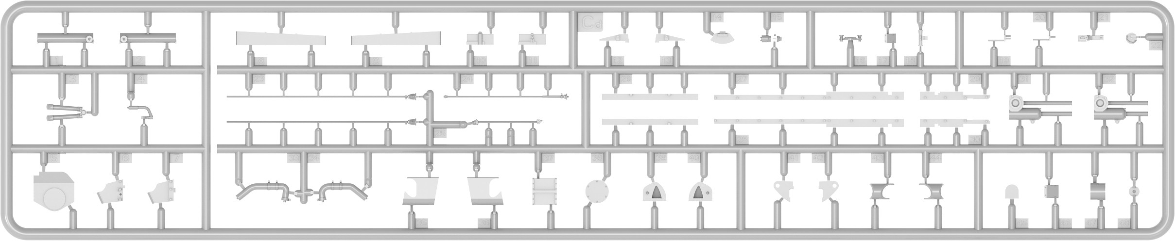 Model plastikowy do sklejania zawiera wszystkie elementy potrzebne do budowy modelu, w tym m.in.: