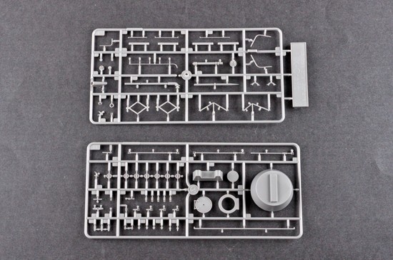 Model plastikowy do sklejania zawiera wszystkie elementy potrzebne do budowy modelu, w tym m.in.: