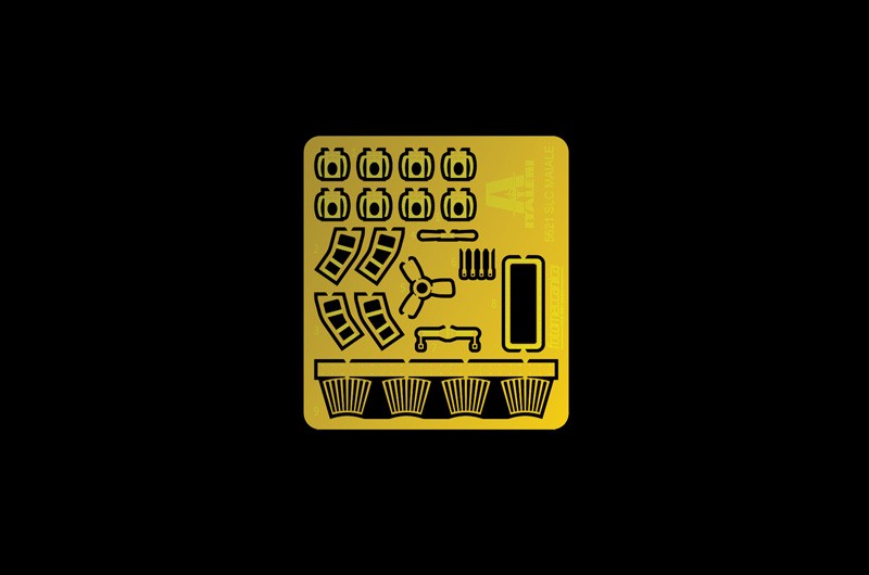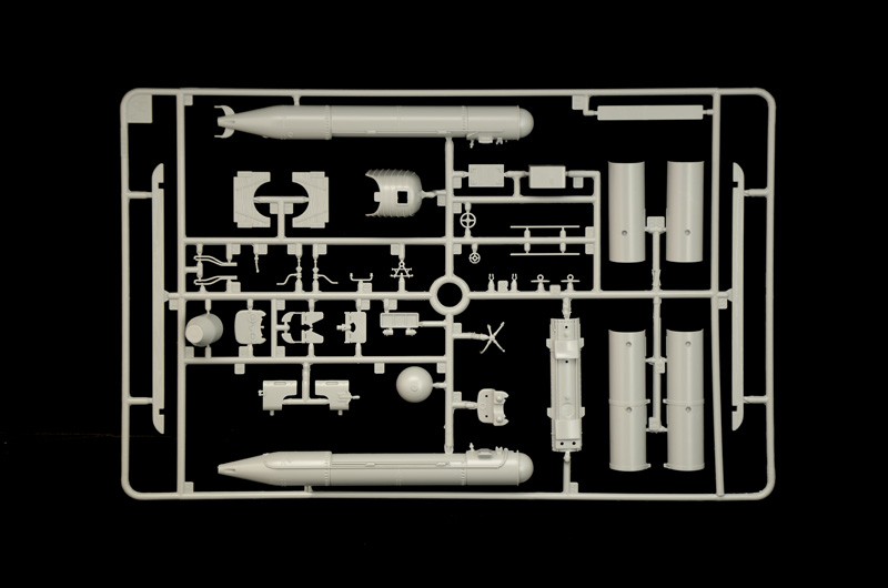 Model plastikowy do sklejania zawiera wszystkie elementy potrzebne do budowy modelu, w tym m.in.: