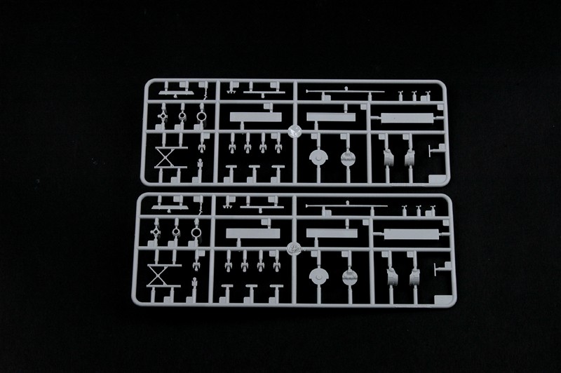Model plastikowy do sklejania zawiera wszystkie elementy potrzebne do budowy modelu, w tym m.in.:
