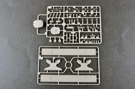 Model plastikowy do sklejania zawiera wszystkie elementy potrzebne do budowy modelu, w tym m.in.: