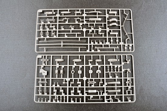 Model plastikowy do sklejania zawiera wszystkie elementy potrzebne do budowy modelu, w tym m.in.: