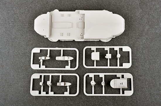 Model plastikowy do sklejania zawiera wszystkie elementy potrzebne do budowy modelu, w tym m.in.: