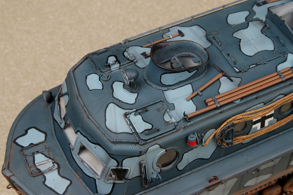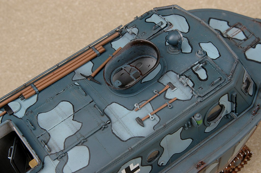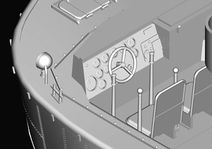 Model plastikowy do sklejania zawiera wszystkie elementy potrzebne do budowy modelu, w tym m.in.: